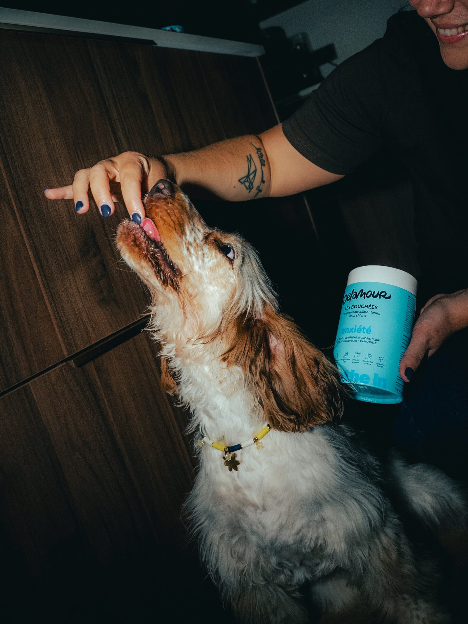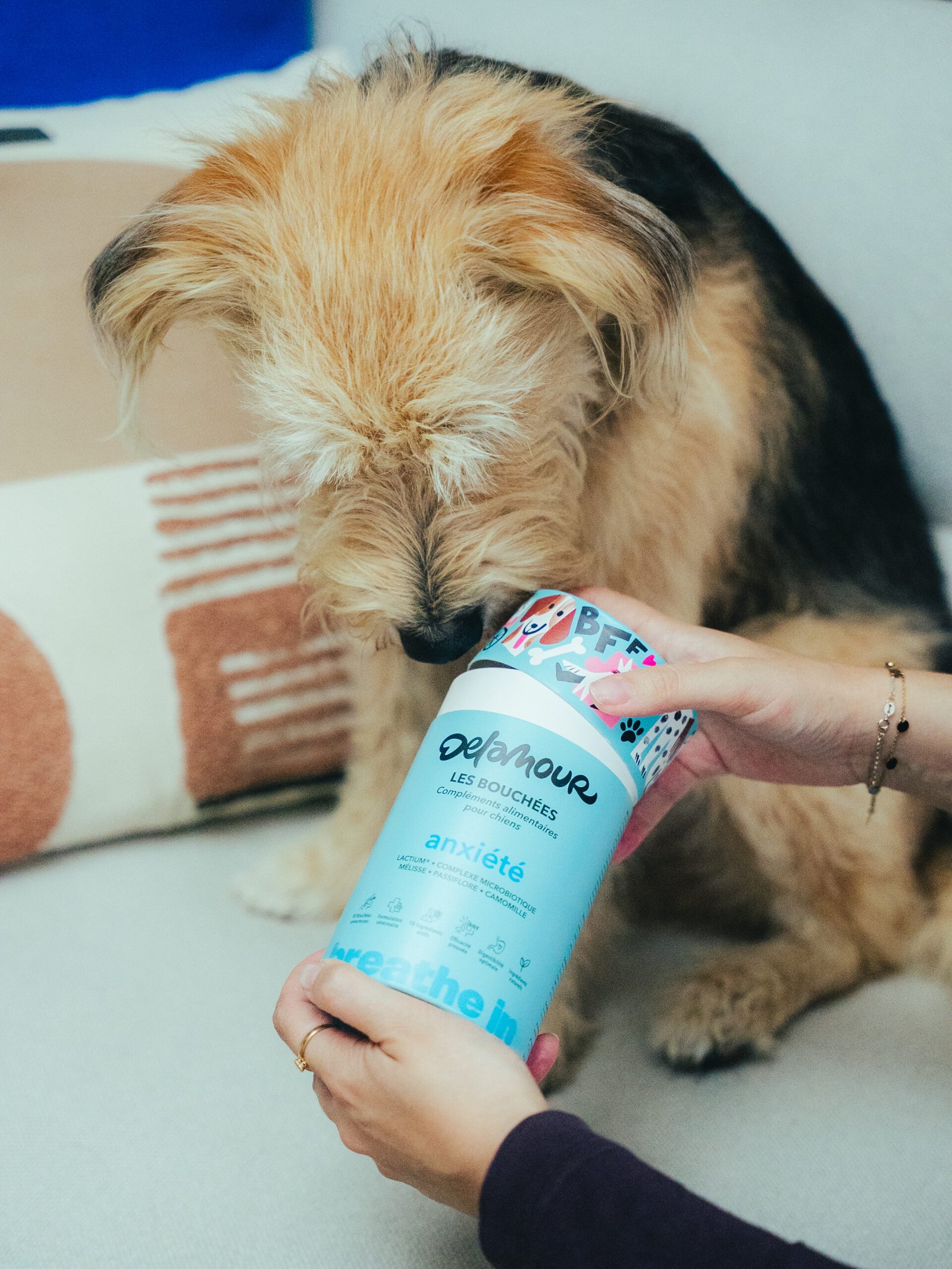 Les Bouchées Anxiété sont des compléments alimentaires naturels 🌿 et hautement concentrés, conçus avec le Docteur Vétérinaire Éric Charles, expert en nutrition animale. Leur formule exclusive associe des actifs brevetés issus de laboratoires européens dans un dosage rigoureux, afin de garantir synergie et efficacité.