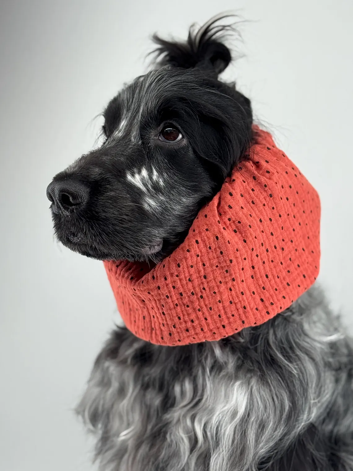 Snood en gaze de coton léger et respirant pour chien – Terracotta à pois noirs